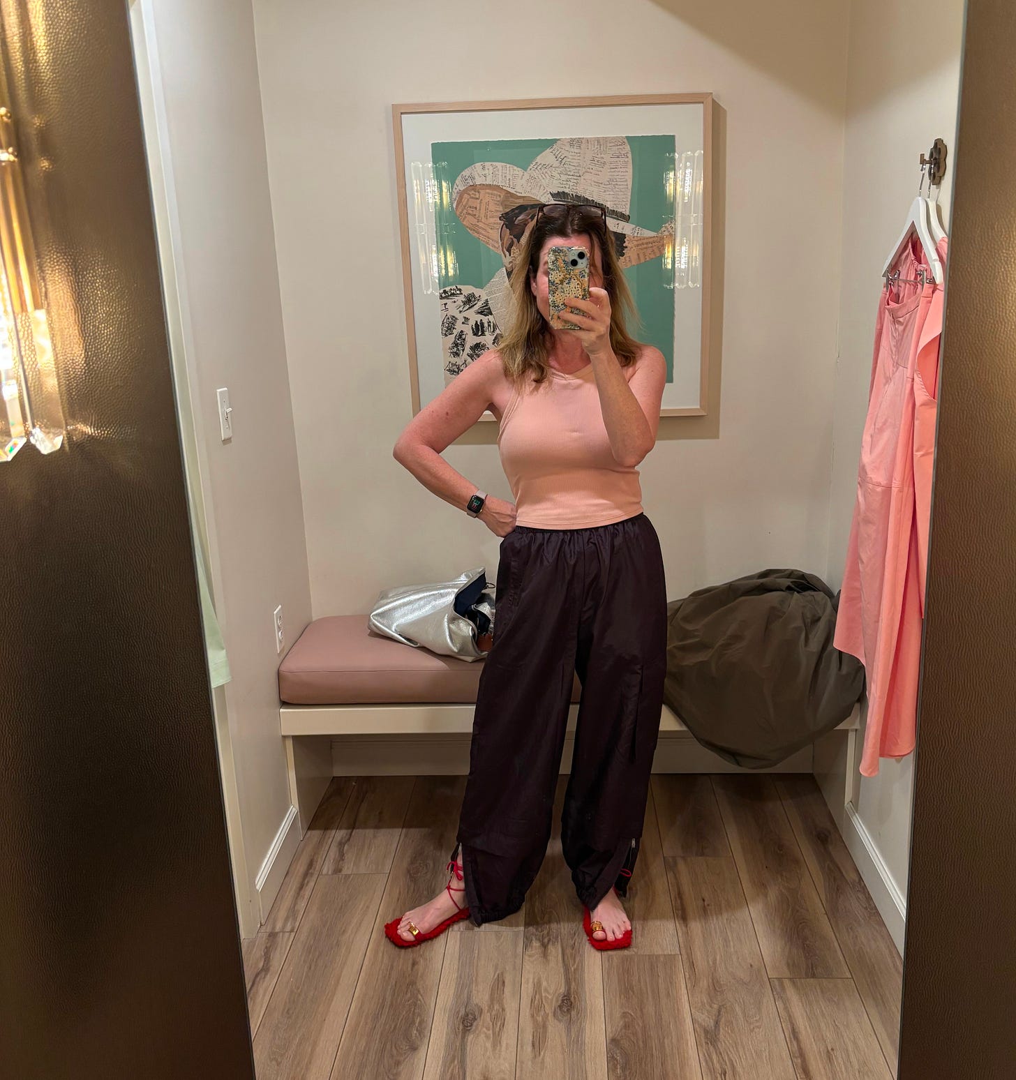 My hot take here is that I think I’ve been wearing the wrong size in the Wilt. My very first Tibi purchase was a pair of Wilt Joggers in Sand and I bought them in the short length, size small. While they certainly fit and I have loved wearing them, my eye has now adjusted to Tibi’s relaxed aesthetic and I soooooooo much prefer the Wilts in the size I’m trying on here, medium in the regular length which I also think they call long? While they lose their jogger shape a little, I think the drape is so pretty and this color is dreamy, no?