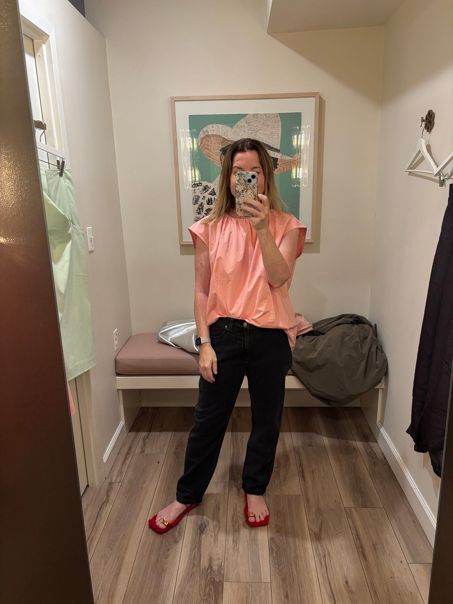 I had to look twice to make sure these jeans were Tibi because it’s not the denim shape we usually see. I took the larger of my two sizes in and I liked these. I’m not in the market for black jeans but if you are, these are very very good. It’s hard to find a straight jean that also feels relaxed and this is it!